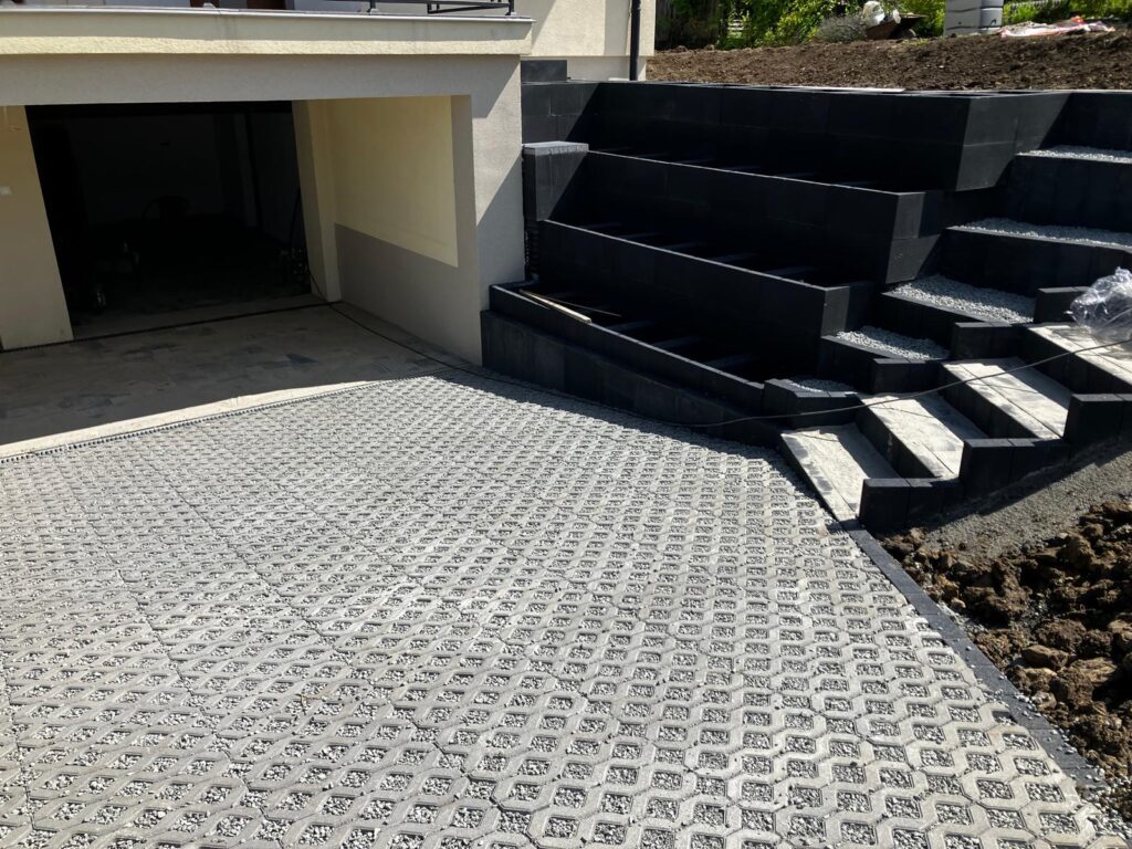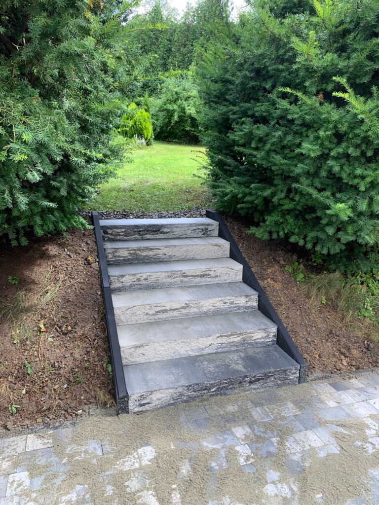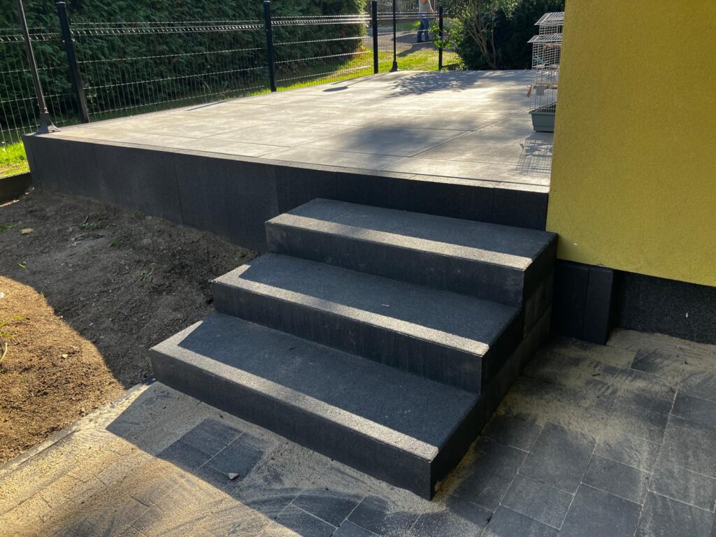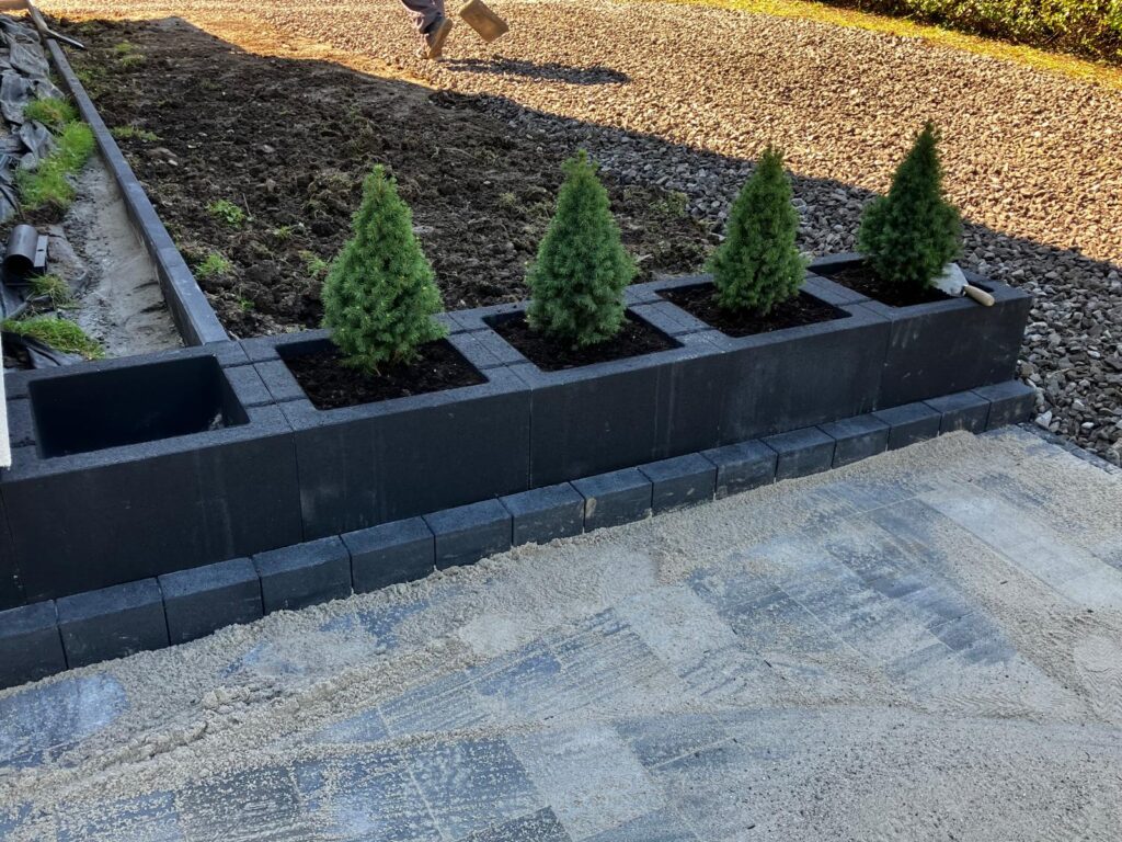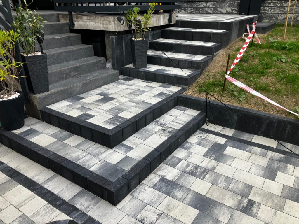 Układanie innych elementów betonowych takich jak stopnie schodowe, rabaty, doniczki